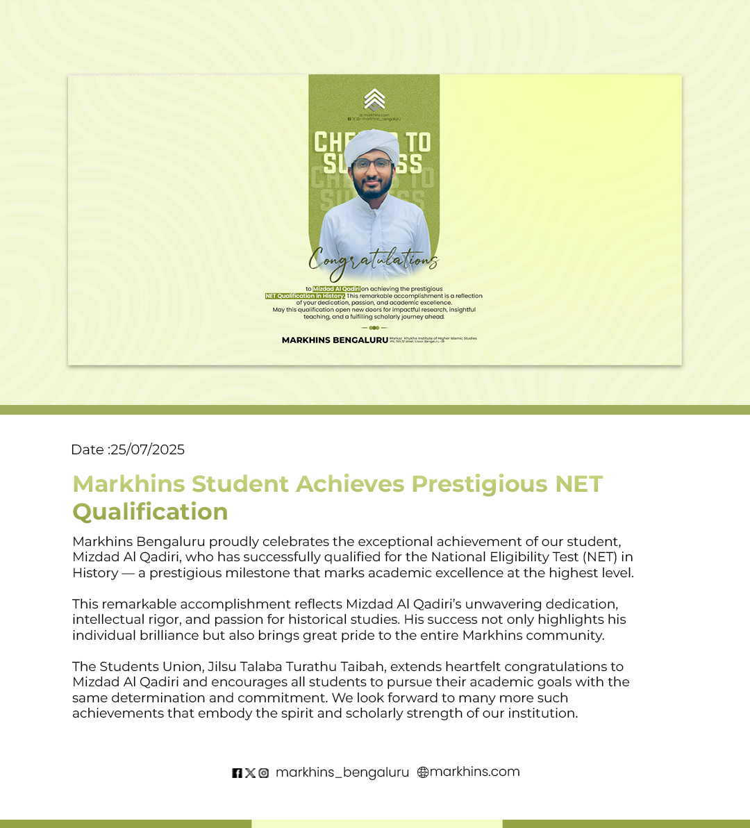 Markhins Bengaluru proudly congratulates Mizdad Al Qadiri for achieving the prestigious NET Qualific...