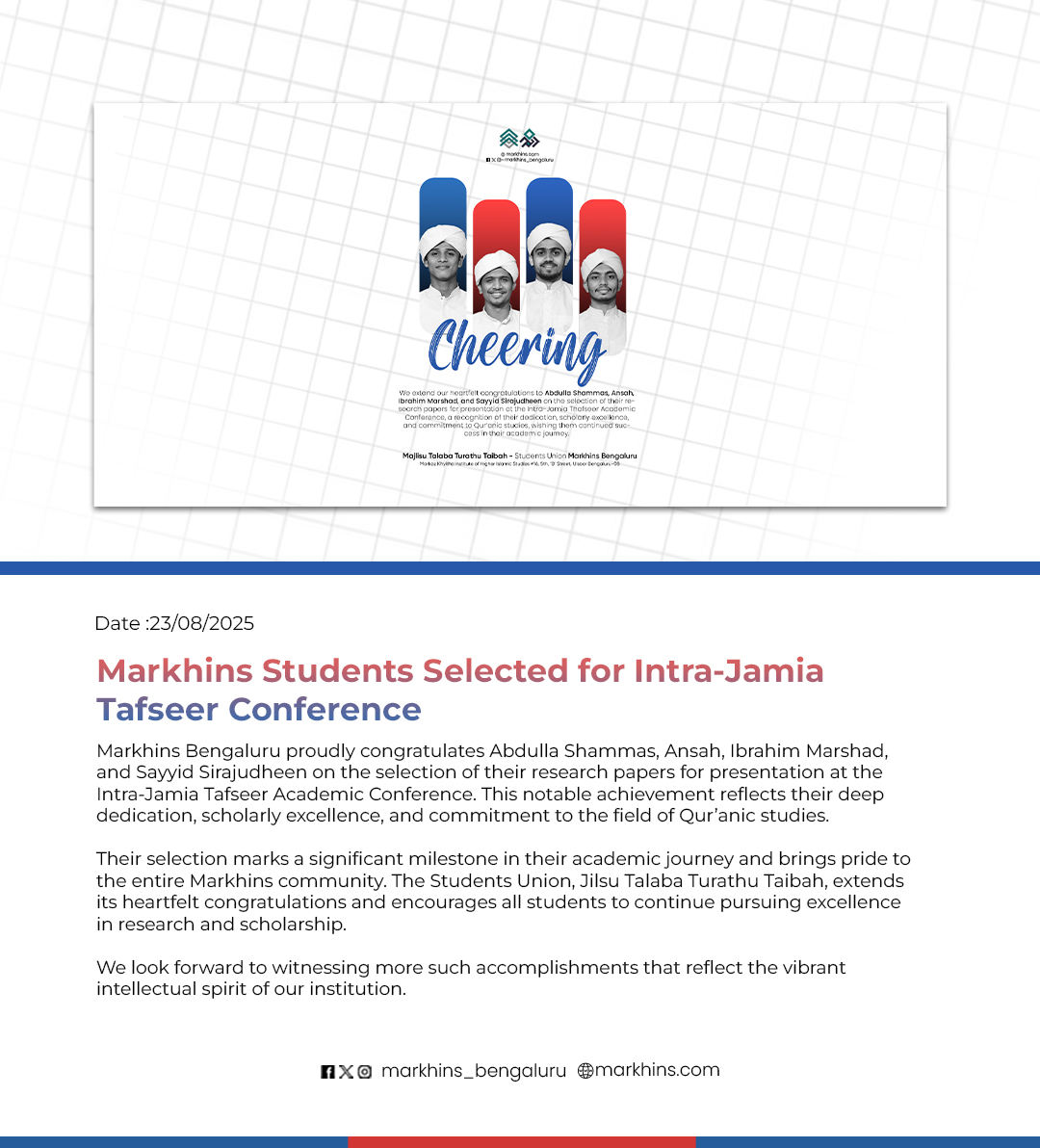 Markhins Students Selected for Intra-Jamia Tafseer Conference